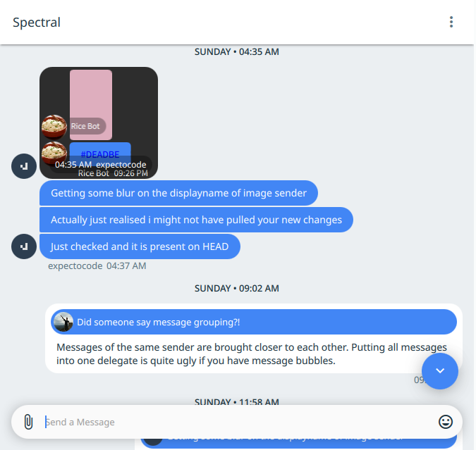 - The team is still working on the main missing features: creation of direct chat, read receipt, along with UI/UX polishing.