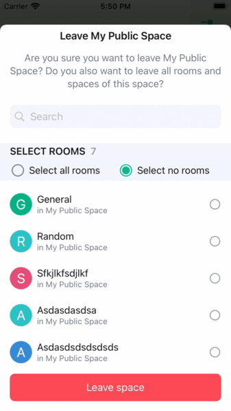 - The first part of Snehit's GSoC project is almost ready to land: The room list is gaining a list of spaces, which can be used to filter for the rooms included in that space