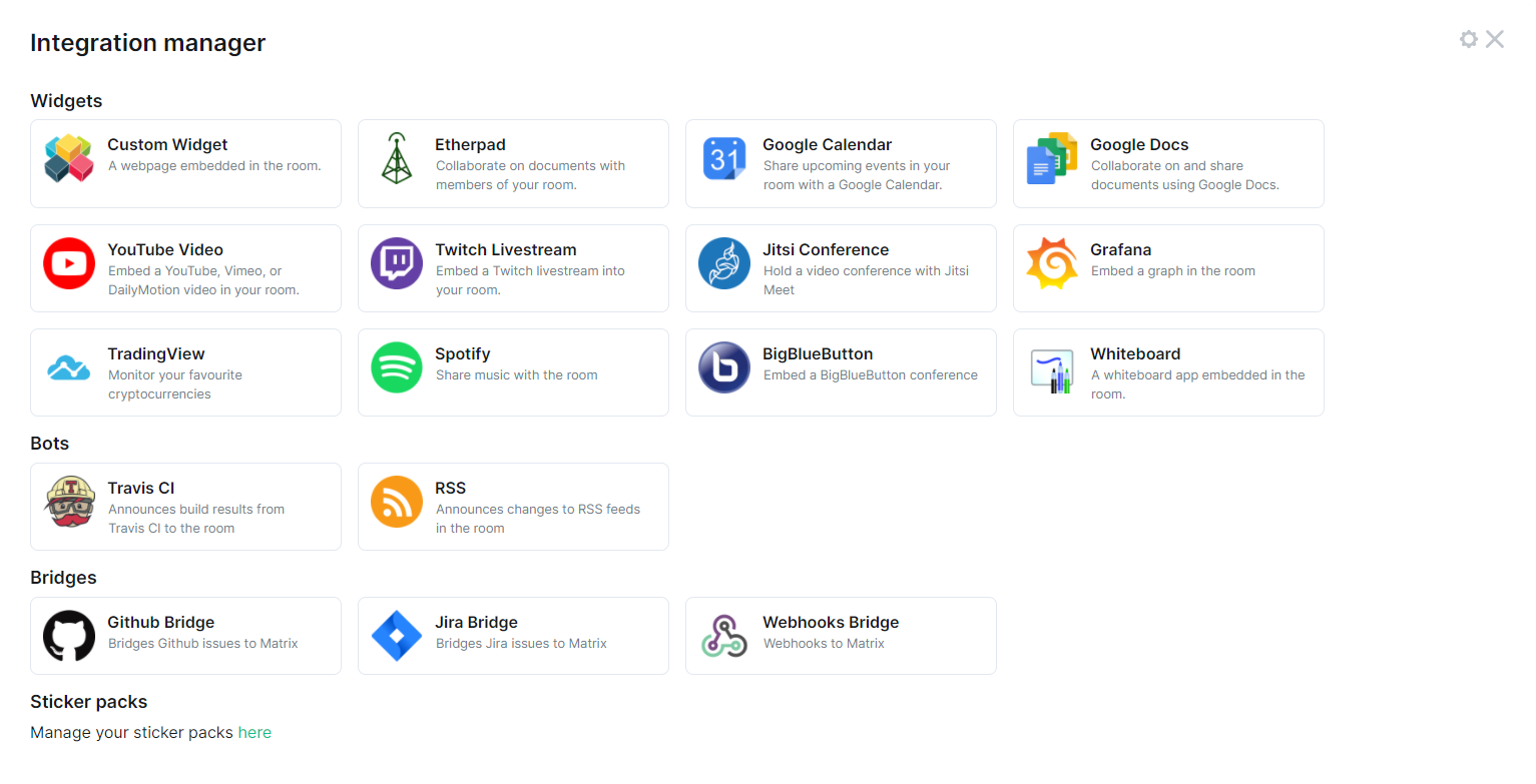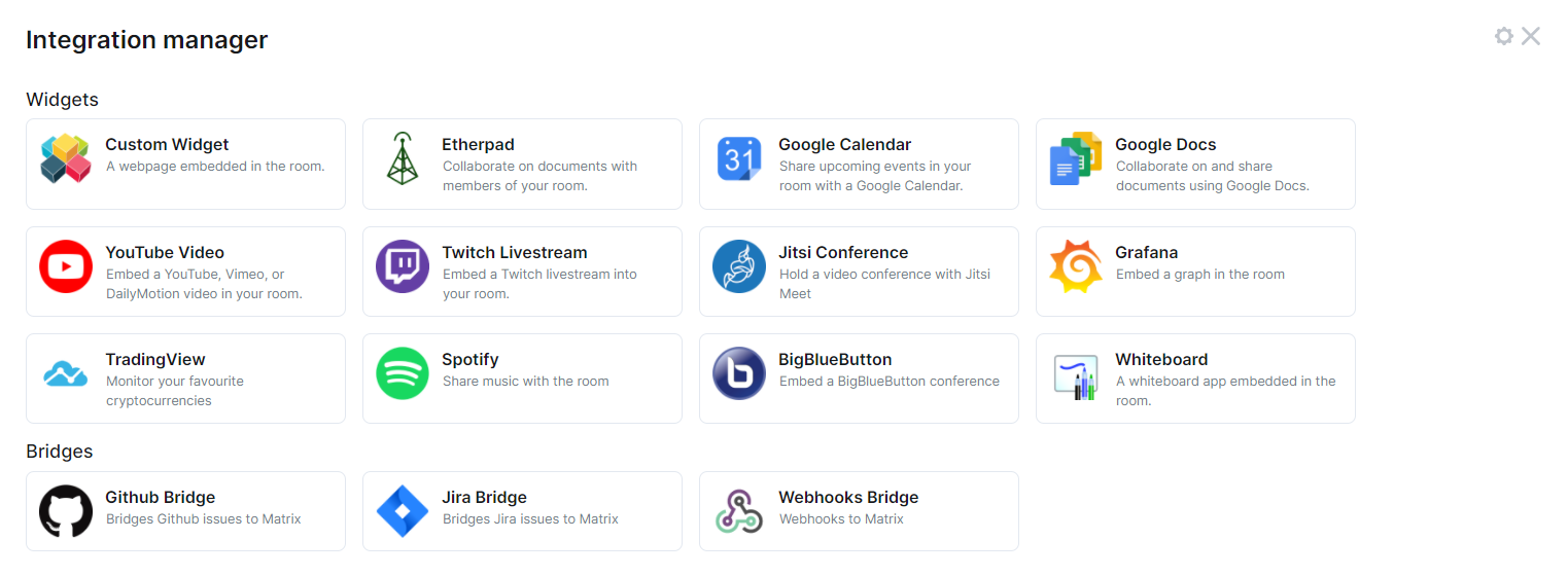 Thanks to HarHarLinks, matrix-docker-ansible-deploy can now install the matrix-hookshot bridge for bridging Matrix to multiple project management services, such as GitHub, GitLab and JIRA.