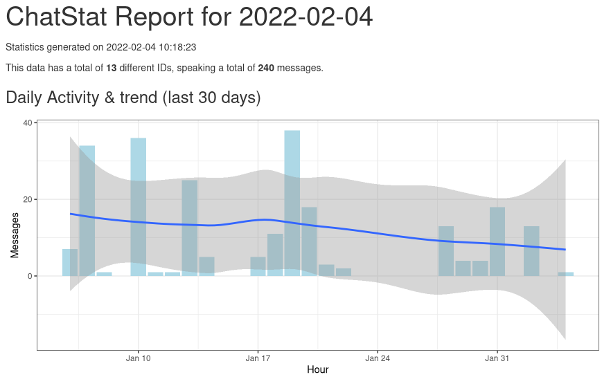 Ahead of my lightning talk on Sunday, ChatStat has been polished up and given it's first release. You can get it here. Huge thanks to @johrpan:johrpan.de for their contributions too.