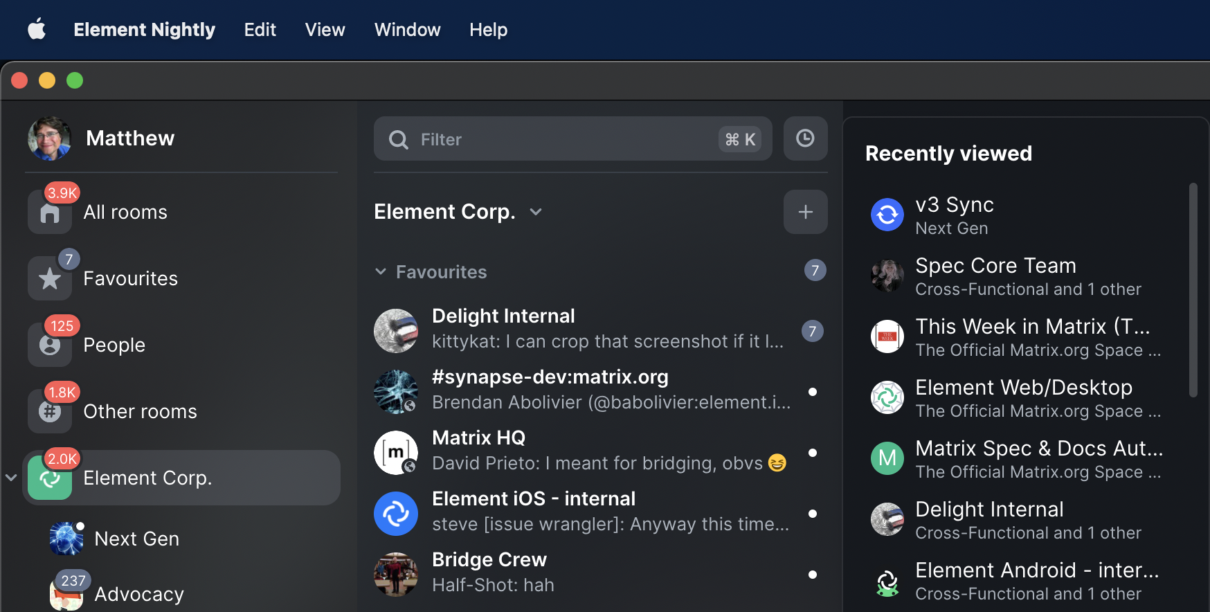 Matrix v1.2 has landed! π₯³ Read the official announcement blogpost and check it out over at https://spec.matrix.org/v1.2/. This release includes headlining features such as Spaces, room versions 8 and 9 which bring restricted join rules, as well as the new Matrix URI scheme.