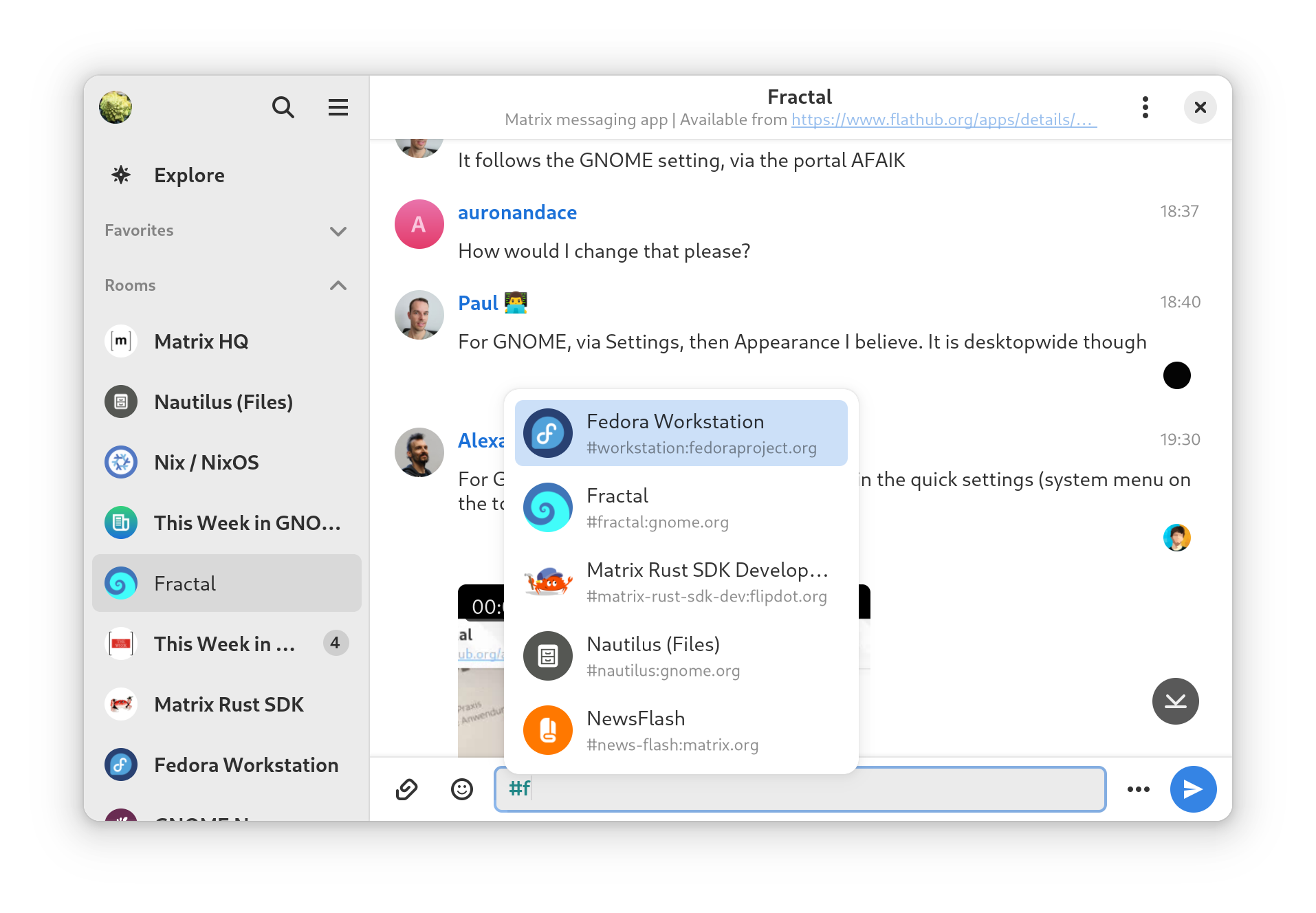 • Fractal can open Matrix URIs, it is even registered as a handler for the matrix scheme