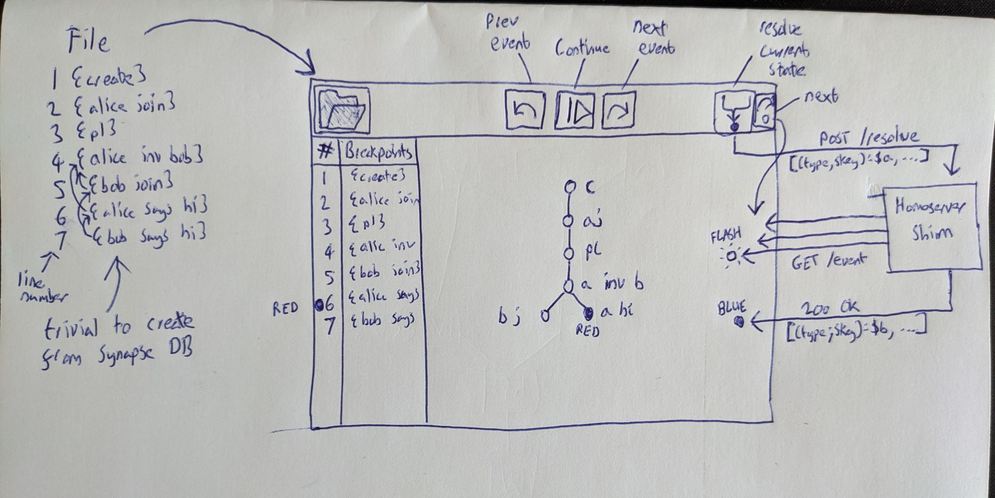 • Testing: drop the UI and DAGs could be automatically loaded, resolved and asserted that the state at each event is correct, effectively making a server agnostic state resolution test suite.