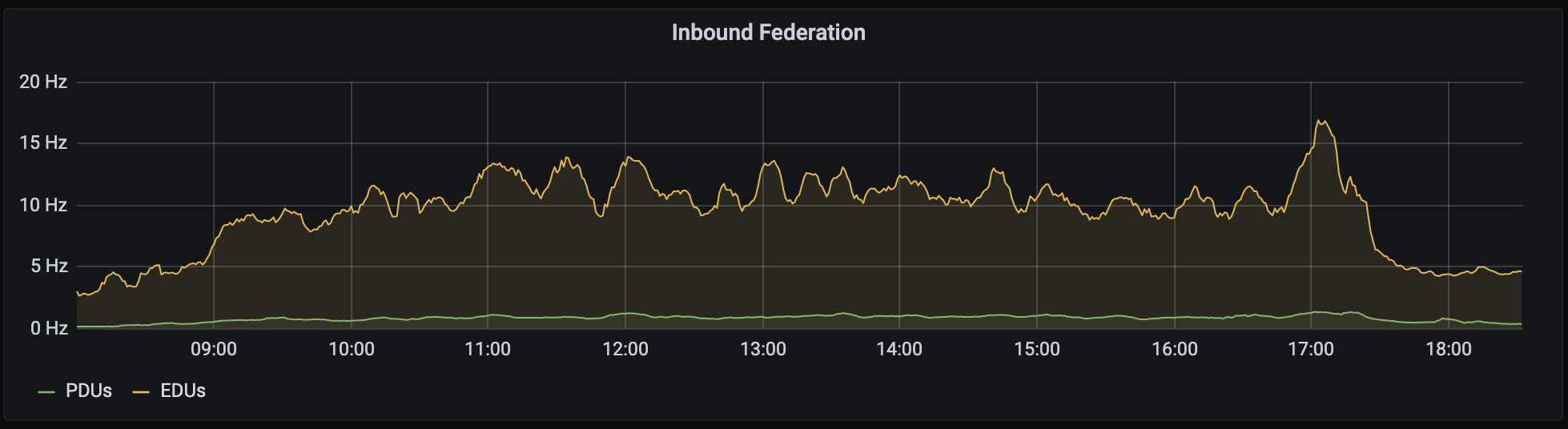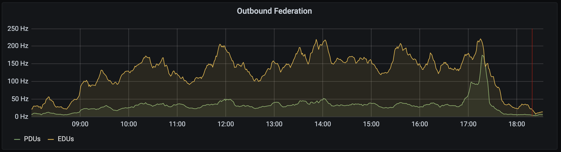 The most notable difference between this year and the previous year has been the usage of a “attendees.fosdem.org” instance in addition to the original “fosdem.org” one, specifically for attendees. The graphs speak for themselves: Synapse could handle the load of the 23K users (13K joined users and 10K lurkers) spread across a total number of 941 rooms. The real eye-opener however is that of the 13K joined users, only 4K came came from the FOSDEM attendee server, and 1K from Libera Chat, meaning that ~70% of the Matrix participants were already on Matrix and came in from existing servers! 🤯 That means the vast majority of people attended over federation. Decentralisation at work, people! It works! We didn’t host the conference… you did!!