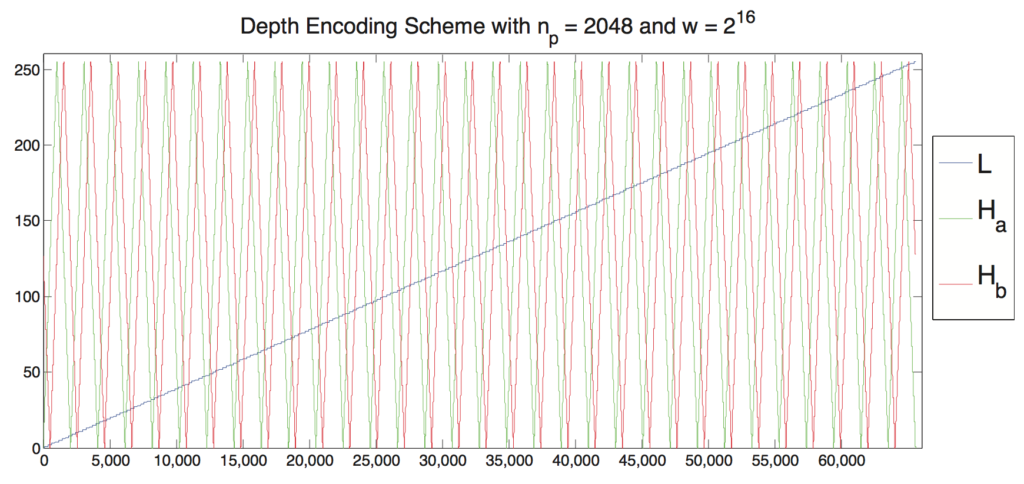 • I probably made a mistake by bitwise casting the 16-bit half-precision floating point depth values directly onto the 16-bit unsigned int lookup index, rather than interpreting the float as a number and building a new index into the lookup table based on its numeric value.  As a result, depth values being encoded ended up having a much lower range than they should.