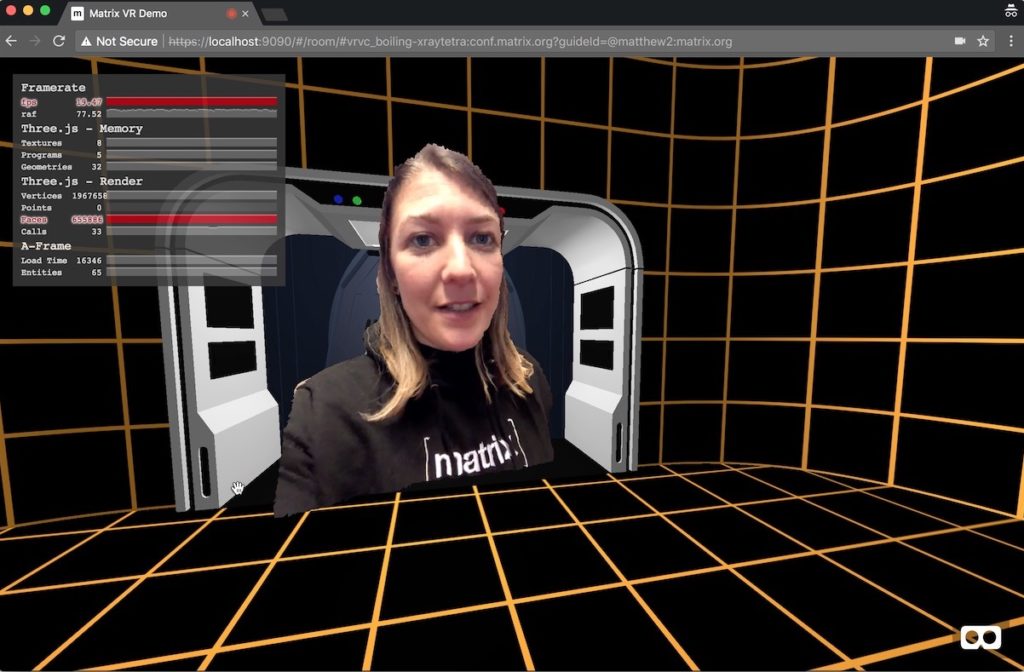Last year we spent a few weeks putting together a proof of concept of using Matrix as an open, interoperable communication layer for VR/AR - showing how you can use it as an open signalling protocol to connect users within (and between) virtual worlds, with full-mesh E2E encrypted video conferencing in VR; WebRTC calls overlaid on 360 degree video, and other fun stuff. The reasons for building the demo were quite eclectic: